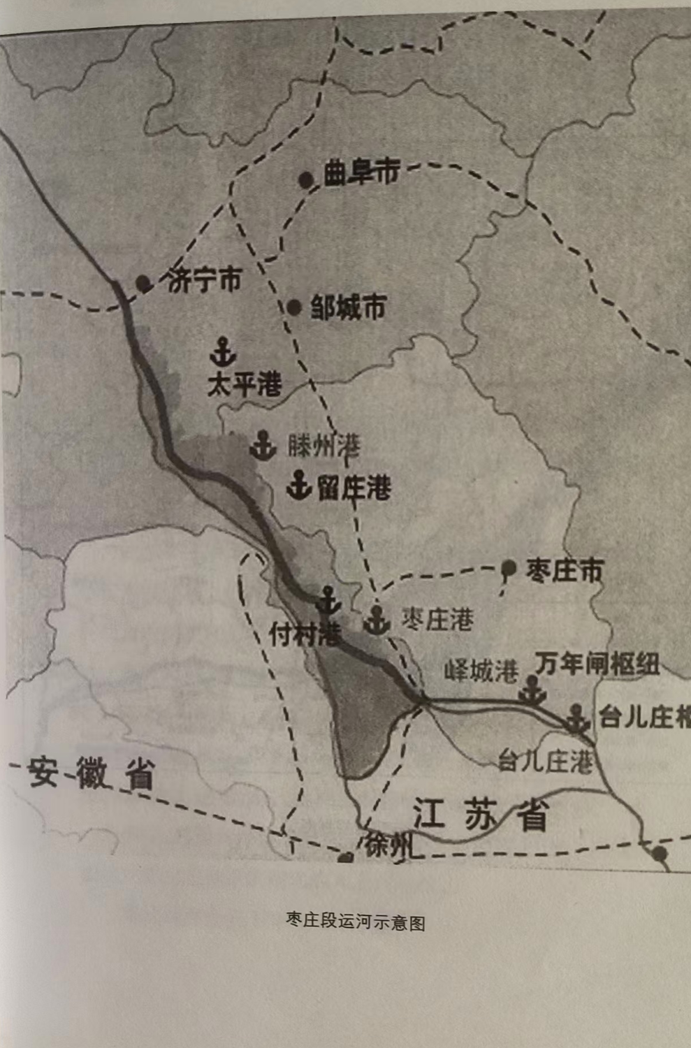 内容提要(关键词):一.韩庄运河的开挖与治理。二.台儿庄古城的兴衰与繁荣。三.韩庄运河与台儿庄古城的关系。 逐水而居。以河兴城。台儿庄城的未来。 一. 挖河的记忆 台儿庄区属淮河流域的沂沭泗河流域韩庄运河水系。 韩庄运河是中国京杭大运河的一部分。从某种意义上来说, 韩庄运河是台儿庄的“母亲河”。 23. 1992年11月,水利部、交通部以水计[1992]103号文件对韩庄运河(台儿庄-大王庙)航道及防洪工程批准修建。该河段按二十年一遇防洪、三级航道(船闸按二级船闸)、泄洪流量1900秒立米标准设计,设计河底高程为17米、底宽50米、边坡1:3。挖河土方工程量700万立方米,砼3600立方米,块石3.6万立方米,永久占地4300亩,投资概算1亿元。分别由江苏省和水利部淮委负责实施。 台儿庄节制闸下游至陶沟河口以下一公里,为省界实施段,包括扩挖河道8.1公里,加固两岸堤防等工程项目,由水利部淮委东调南下直属工程指挥部负责建设。指挥部设在台儿庄,刘郿县任指挥,顾世银、汤苏徽等任副指挥。其中山东省地段3500米,山东、江苏两省插花地3600米,江苏省地段1000米。1994年6月18日,先期建设山东境内左堤6034米,主要由台儿庄区水利建筑工程公司(山东省水建七公司,大禹集团前身)采用铲、运机械在滩地借土复堤施工,同年8月29日竣工,完成上方45万立方米。1994年9月10日,韩庄运河航道扩挖山东境内导流沟(台儿庄环城河)工程开工,同年10月28日完工,共完成土方32.1万立方米。导流沟沿线配建生产桥或工作桥12座。1994年12月10日,主河段扩挖开工,采用挖掘机、自卸汽车,配合铲运机、泥浆泵施工,于1995年5月25日竣工。共完成土石方137.59万立方米,其中淤泥46.57万立方米、石方3万立方米。台儿庄老船闸以下780米航道,主要采用挖泥船施工,于1995年3月15日开工,吸挖淤泥达20万立方米。同时按设计底高程18.3米、底宽30米、边坡1:2.5进行了削坡治理,共开挖土方11.62万立方米。主河段扩挖工程,分别由台儿庄区水利建筑工程公司(山东省水建七公司,大禹水发前身)、江苏省铜山县土方机械化施工管理处、沂沐泗水利工程管理局工程处、中国人民解放军54642部队等承包施工。台儿庄闸下游连接段石护工程,由淮委建筑安装公司、南四湖工程局第二工程处承包施工。石方工程于1995年3月13日开工,5月25日全部竣工,连同两处穿堤排涝站干沟护砌石加固,共完成砌石 8000立方米,开挖回填土方4万立方米。 韩庄运河(台儿庄-大王庙)航道及防洪工程征迁工作,得到了山东、江苏两省地方党委、政府的大力支持。征迁工作自1994年10月18日开始至 1995年1月5日结束,永久征地共计1222.4亩,临时征地2757.6亩;共拆除房屋1 694.32平方米;伐树17736棵;迁坟330座;拆除滩地违章建房189间、违章码头24座。 韩庄运河(台儿庄-大王庙)航道及防洪省界实施段工程,共投入各类主要施工机械376 台(套),是韩庄运河首次全部采用机械化施工的运河治理工程,解决了淮河流域东调南下工程规划中的又一省界梗阻(卡口),扩大了南四湖和韩庄运河的洪水出路,河道排洪由3000~3800立方米每秒,提高到4400~4600立方米每秒,通航等级由六级提高到三级标准;还可满足南水北调东线输水150立方米每秒的设计要求,也成就了台儿庄“八河绕古城"(运河㇏大沙河㇏陶沟河㇏月河㇏环城河㇏兰祺河㇏沧浪河㇏秀水河)的旅游城市的基本框架。具有极其显著的多功能综合效益。该工程的完成,进一步深化了我区与水利部淮委、沂沭泗管理局的良好关系,为下步韩庄运河各项治理项目的全面实施铺平了道路;也为淮委系统省界水事纠纷化解、团结治水树立了标杆,淮委水政处专门在安徽黄山召开会议,推广台儿庄的经验和做法,而后制定了淮委系统(苏鲁豫皖)省际边界水事规约。工程竣工后,经水利部淮河委员会组织验收,全部工程均达到优良标准。章显 院长的这一设计方案被水利部评为优秀勘测设计范例。(未完待续) 韩庄运河(台儿庄---大王庙)航道及防洪省界实施段工程,共投入各类主要施工机械376 台(套),挖河土方工程量700万立方米,砼3600立方米,块石3.6万立方米,永久占地4300亩,投资概算1亿元。是韩庄运河首次全部采用机械化施工的运河治理工程,解决了淮河流域东调南下工程规划中的又一省界梗阻(卡口),扩大了南四湖和韩庄运河的洪水出路,河道排洪由3000~3800立方米每秒,提高到4400~4600立方米每秒,通航等级由六级提高到三级标准;还可满足南水北调东线输水150立方米每秒的设计要求,也成就了台儿庄“八河绕古城"(运河㇏大沙河㇏陶沟河㇏月河㇏环城河㇏兰祺河㇏沧浪河㇏秀水河)的旅游城市的基本框架。具有极其显著的多功能综合效益。该工程的完成,进一步深化了我区与水利部淮委、沂沭泗管理局的良好关系,为下步韩庄运河各项治理项目的全面实施铺平了道路;也为淮委系统省界水事纠纷化解、团结治水树立了标杆,淮委水政处专门在安徽黄山召开会议,推广台儿庄的经验和做法,而后制定了淮委系统(苏鲁豫皖)省际边界水事规约。工程竣工后,经水利部淮河委员会组织验收,全部工程均达到优良标准。章显 院长的【韩庄运河(台儿庄至大王庙)工程规划设计】方案被水利部评为优秀勘测设计范例。一九九五年台儿庄人民专门在运河北大堤顺河砖场处(现东进路南头)立碑勒石以记,现在不知石碑流落何处了? "坐 着 游 船 游 京 杭" 的建议 